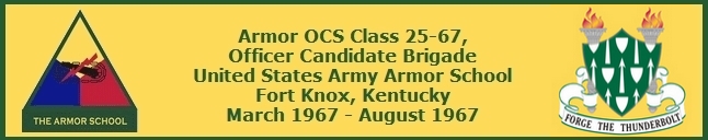 Army Armor School at Fort Knox, Kentucky. Class 25-67 was assigned to